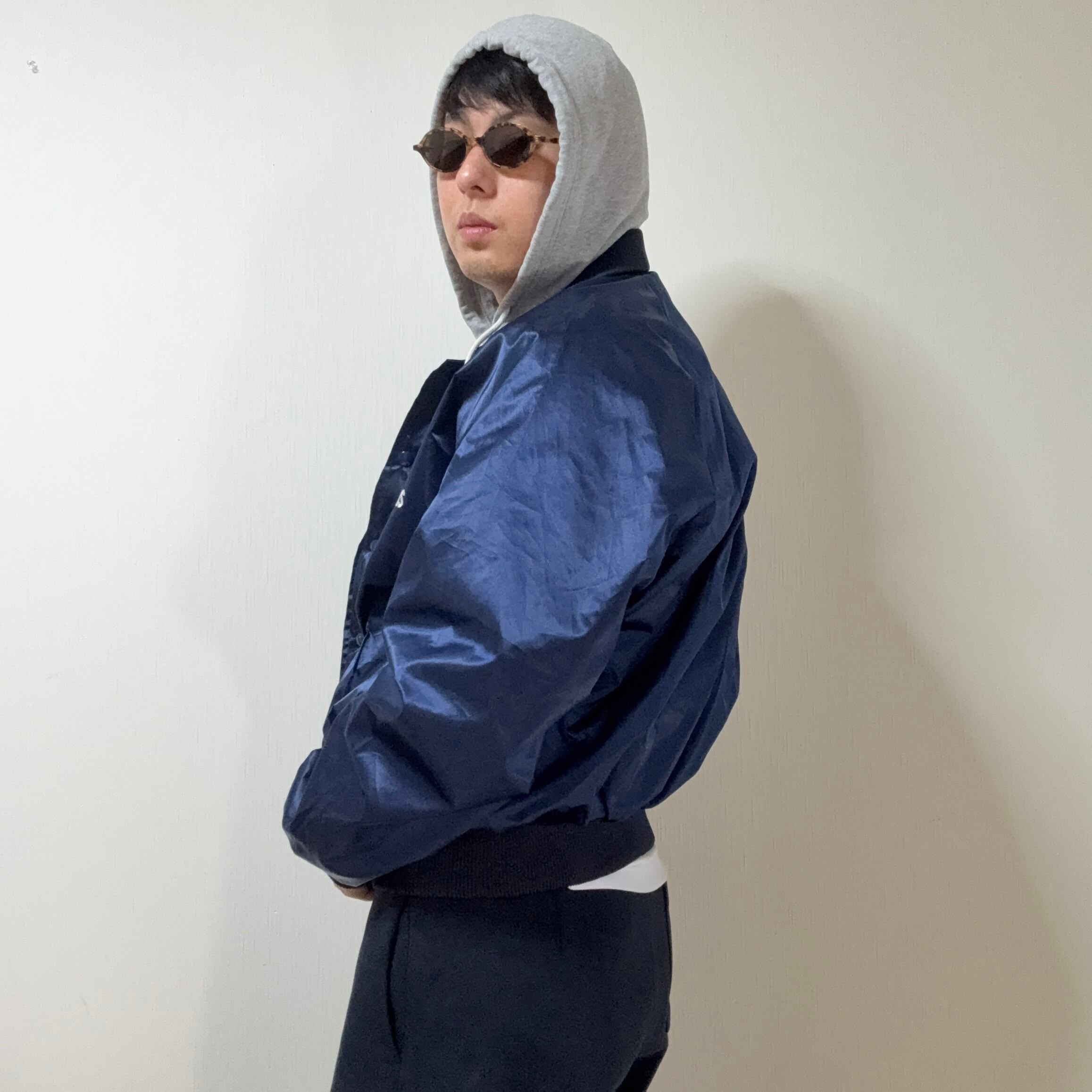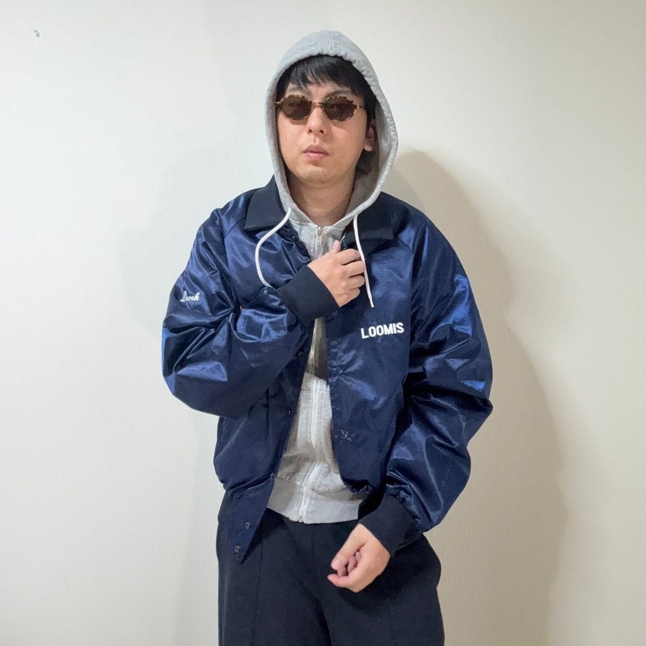 ストリート色の強いスタジャンが多い中でもこちらのアイテムは割とどのジャンルの人にでも使いやすい、合わせやすいカラーリングだと思い、個人的におすすめであまりない色の1点ものだと思います!