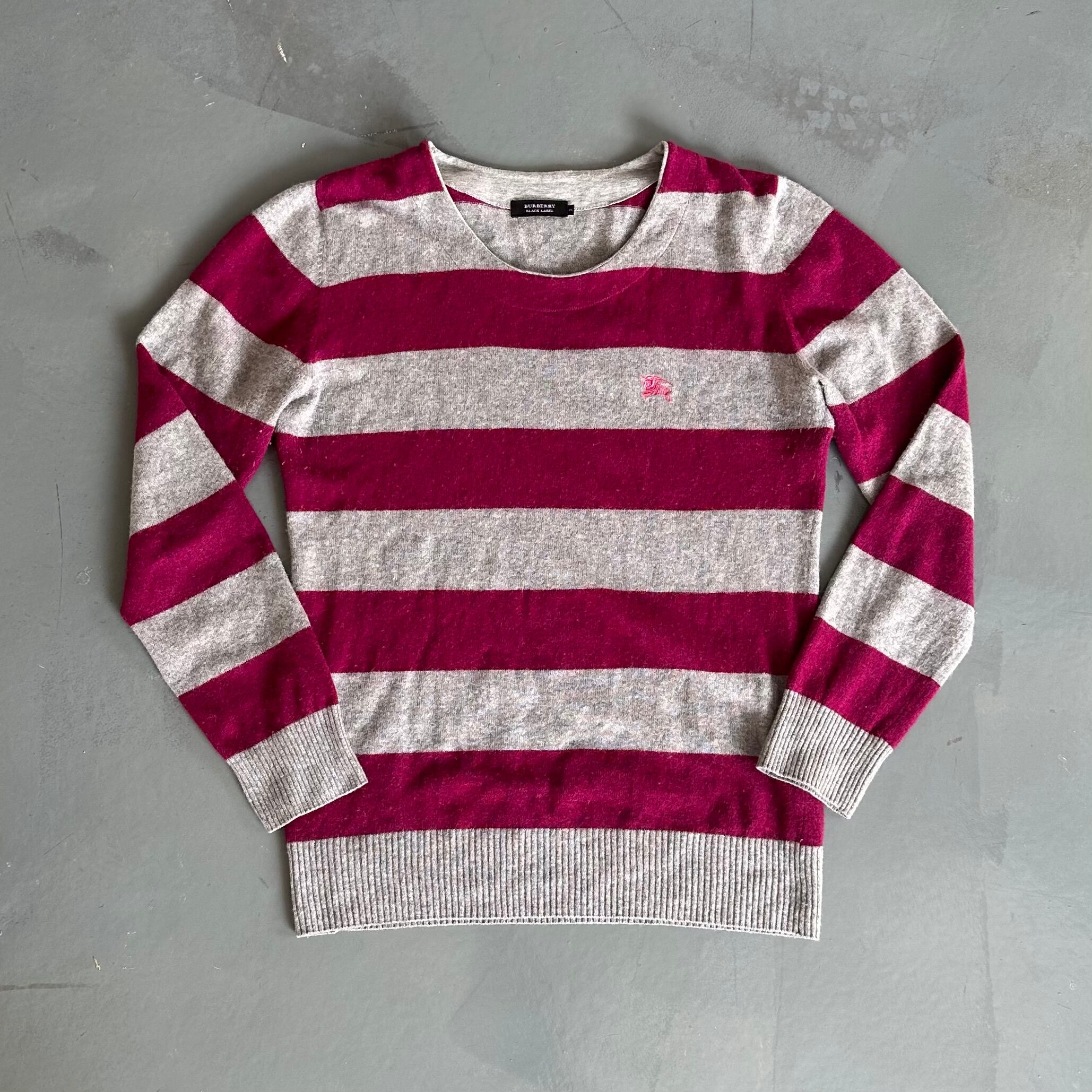 “ BURBERRY BLACK LABEL boarder sweater Knit ( gray × wine red) バーバリー ブラックレーベル セーター ニット ボーダー ホースロゴ グレー ワインレッド