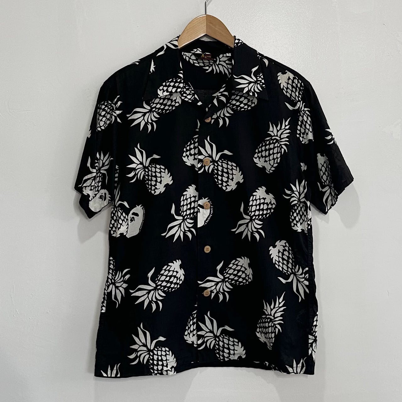“ BATHING APE “ 1st tag Aloha shirt 90’s vintage ベイジング エイプ 初期タグ ロゴ アロハシャツ 半袖 サル 黒 ブラック